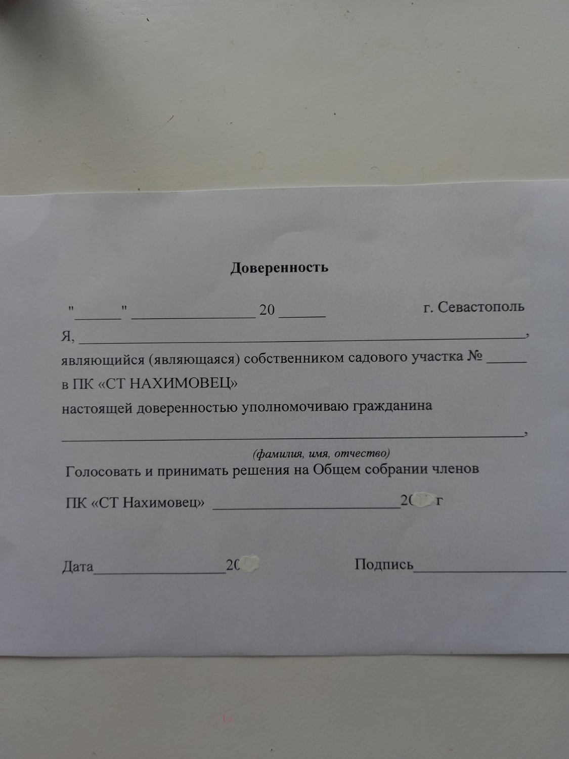 Бланк доверенности.