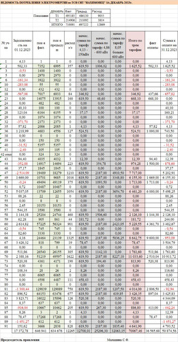 Ведомость потребления электроэнергии в ТСН СНТ "Нахимовец" за декабрь 2023. Размер изображения увеличивается при нажатии на изображение.