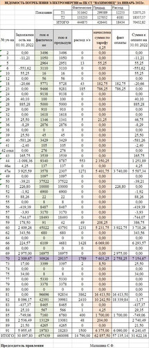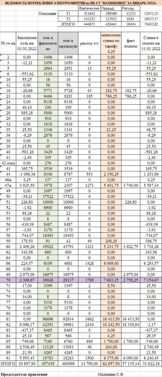 Ведомость потребления электроэнергии в ПК СТ "Нахимовец" за январь 2022. Размер изображения увеличивается при нажатии на изображение.