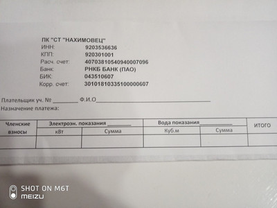 Реквизиты ПК СТ "Нахимовец" - по оплате платежей не изменились. Просьба производить оплату платежей вовремя. Председатель СТ "Нахимовец".