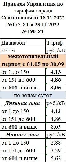 Информационное письмо и приказ 190-УТ от Управления по тарифам города Севастополя.- Ссылка