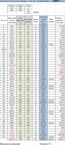 Ведомость расхода воды в ТСН СНТ "Нахимовец" за март 2024. Размер изображения увеличивается при нажатии на изображение.